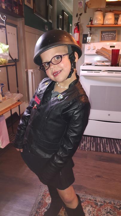 Mercy came to me all geared up!!! Says momma I wanna ride! We got a future biker chick