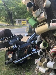 Do you remember a few weeks ago I wrote about checking into the Great American Campground and Dive Bar? The camp host’s face turned red after Brad repeated what she had told us…in Brad’s funny logic anyway.  Brad said at the campground we were sandwiched between two dicks.  Sandwiched between two bars with Dick names.  Whiskey Dicks was a short ride one way and Big Dicks is a longer ride the opposite direction.  Brad and I rode to Big Dicks only to find it closed.  Despite us not checking business hours, the ride was a good one.  We found the Cup Tree and Shoe Fence that day.  Search past posts if you want to read our story of the Cup Tree and Shoe Fence.