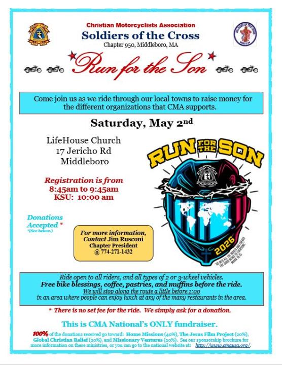 Massachusetts Motorcycle Events » Benefit - Charity » CMA Soldiers of the Cross Run for the Son Fundraiser