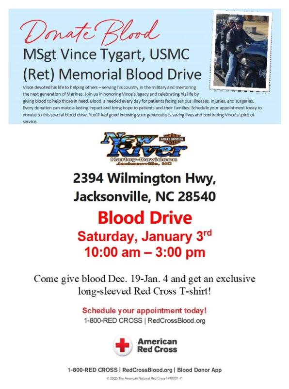MSgt Vince Tygart, USMC (Ret) Memorial Blood Drive