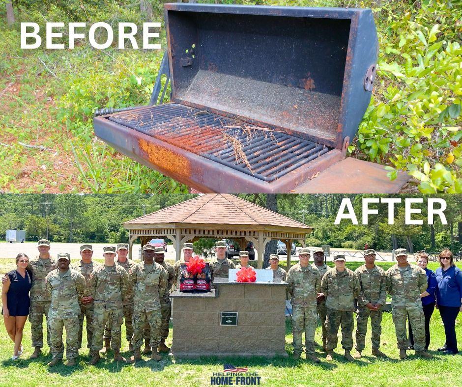 Helping The Home Front had the privilege of replacing the rusted-out small barbecue grill with a much larger and grander grill set-up worthy of our soldiers at Ft. Story.