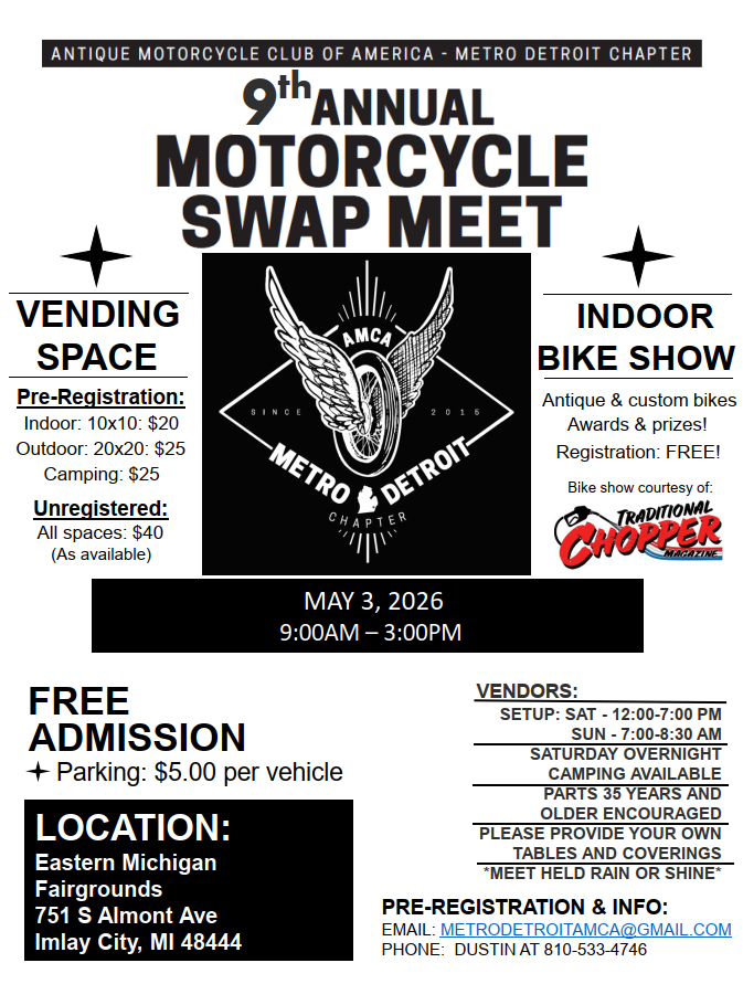 9th Annual Metro Detroit AMCA Antique Motorcycle Swap Meet