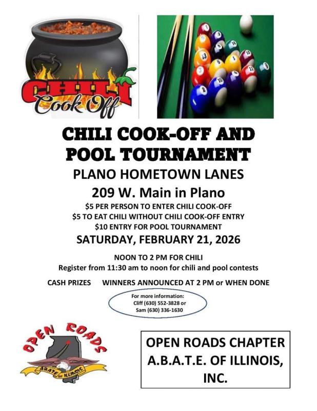 Open Roads ABATE Chili Cook-Off and Pool Tournament