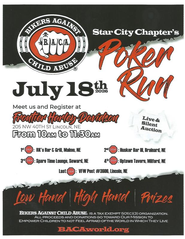 BIKERS AGAINST CHILD ABUSE STAR CITY CHAPTER'S POKER RUN